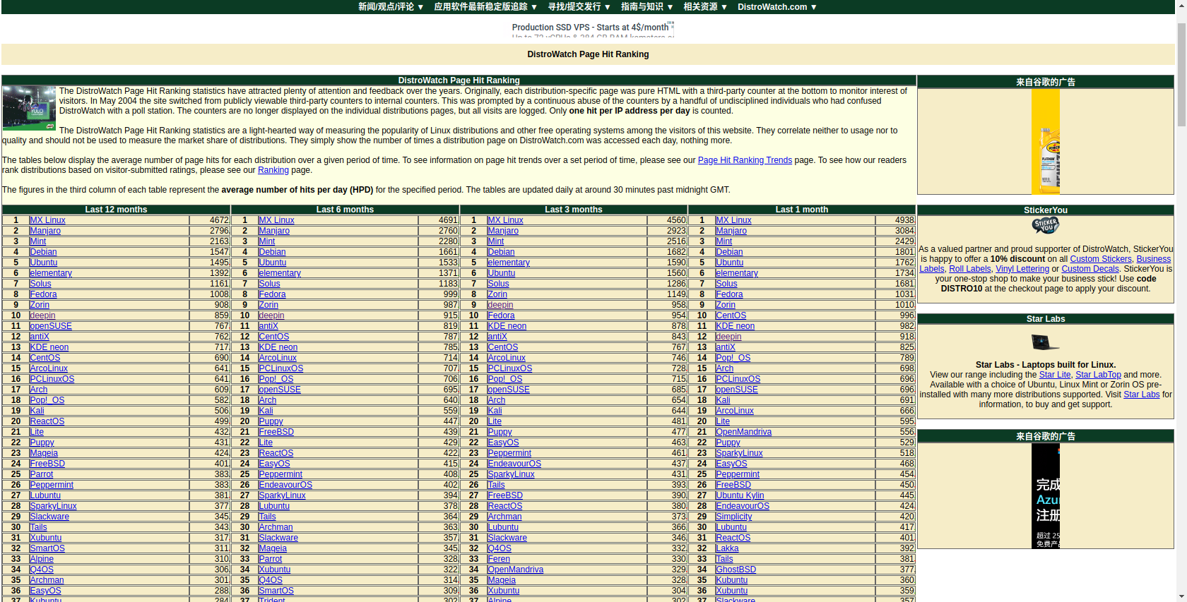 可以看到的deepin基本稳定在第十名,注意现在时间2020年02月15日。