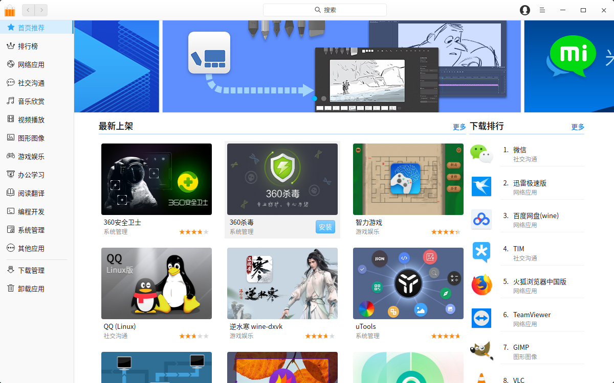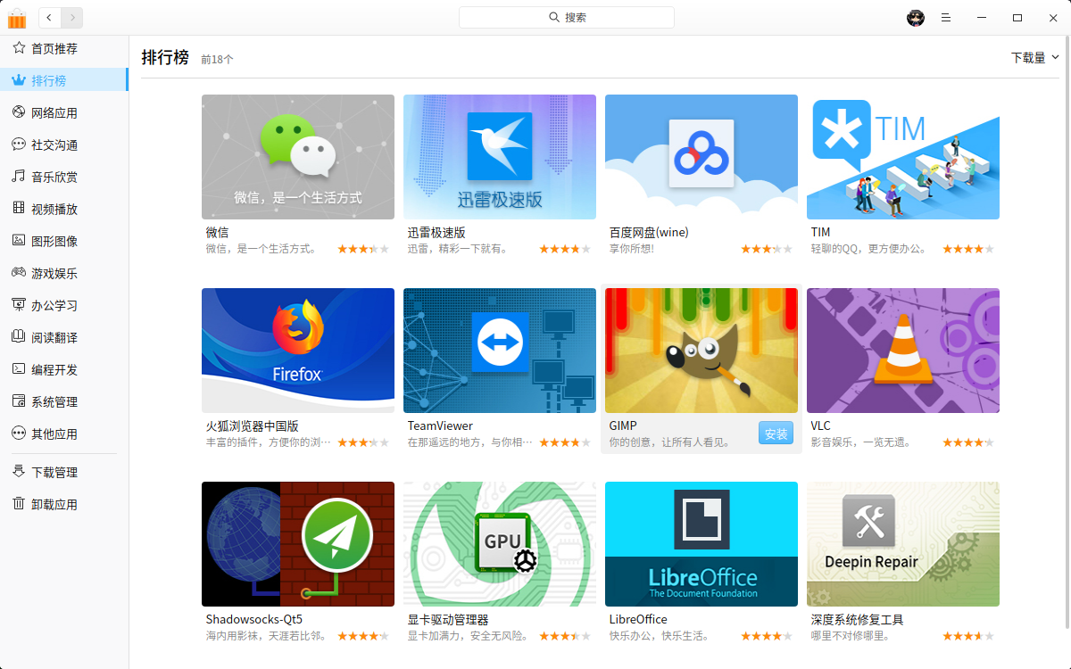 上面这个是应用商店,很多是深度团队自己适配来的,很良心了。