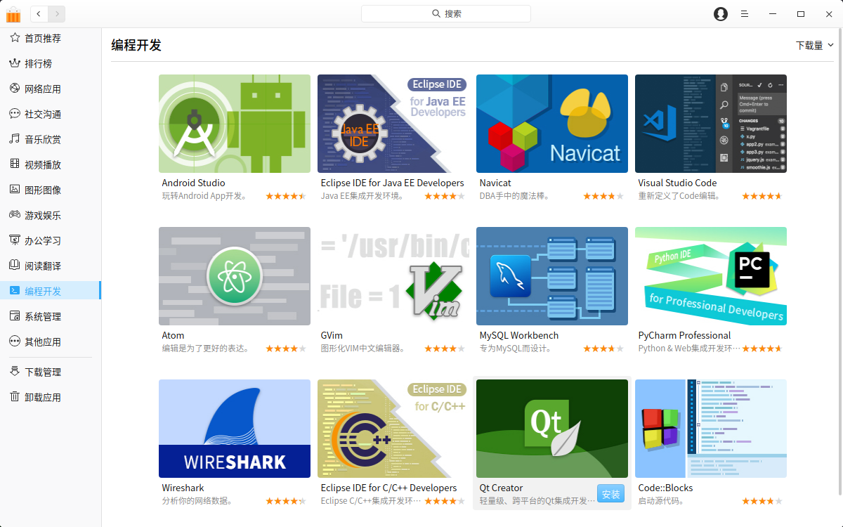 上面这是应用商店里编程开发专区,可以看到这里特殊适配的就少了,毕竟开发用的软件还是给做Linux版的