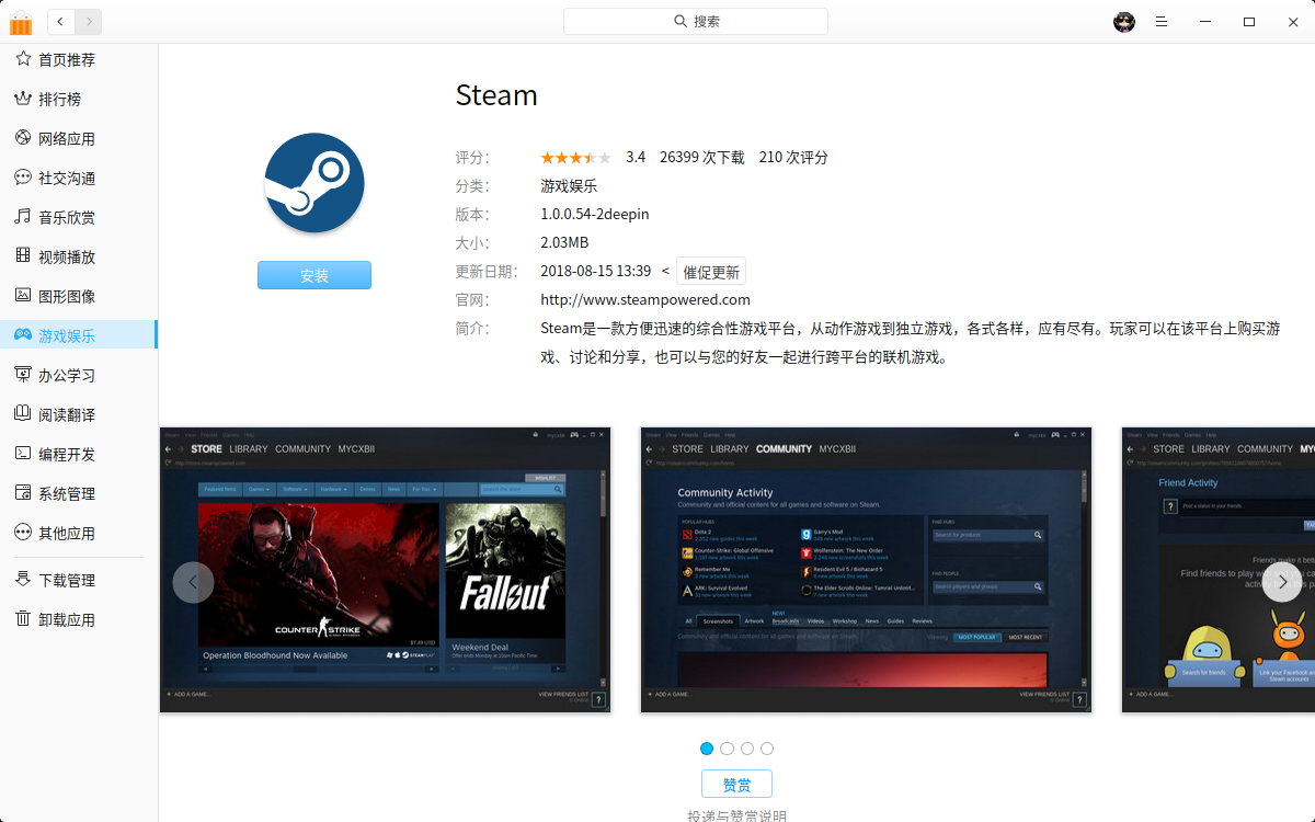 这里说个有意思的,深度团队还把著名游戏平台steam整来了,如下图: